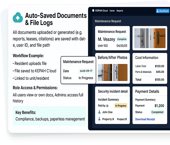 Automated documents, maintenance, and security workflows for property managers and staff.