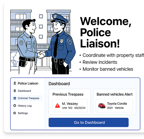 Enables security staff to document trespass incidents, criminal violations, or visitor issues with evidence and timestamps.